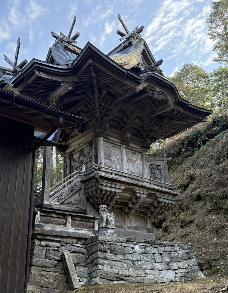 拝殿も立派なのだが、本殿の細工が本当に緻密なつくりで素晴らしい。失礼かも知れないが、地図で見ても本当に山のど真ん中で、MAPを超拡大しなければ出てこない所。だが、いにしえには多くの人の営みがあり、大変豊かな地域だったのがわかる。ここからお神輿が塩塚高原へ登っていたとか・・
