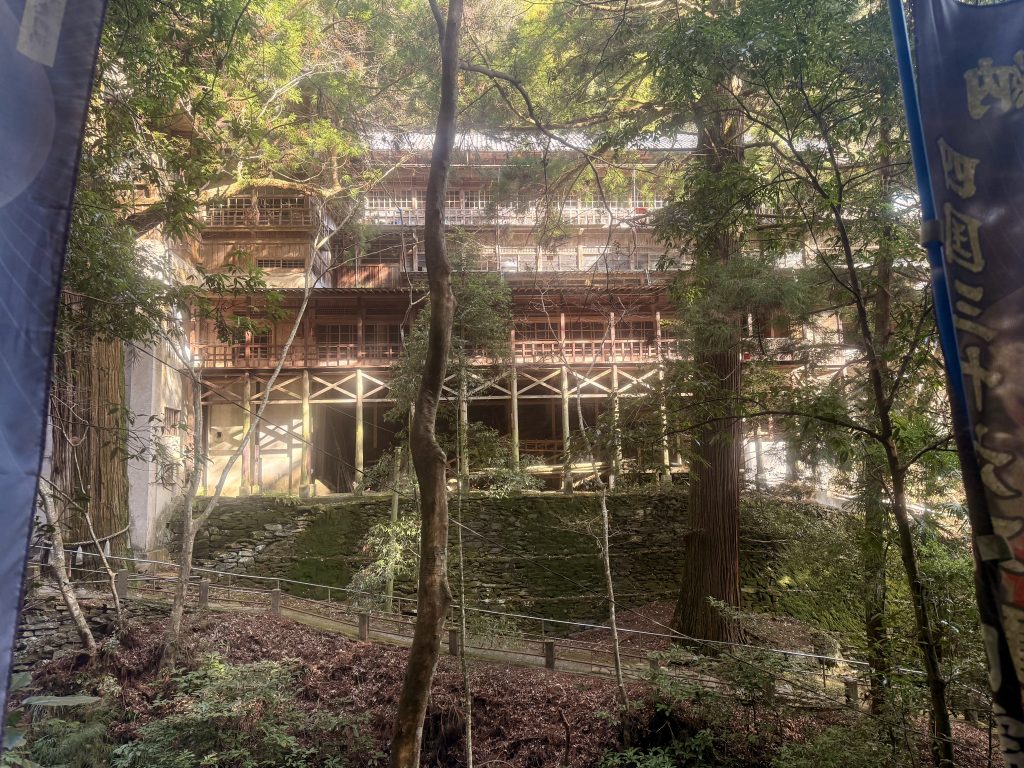 そして、私たちが驚愕してしまったことは、この立派なお寺のつくりです。清水寺のような、また大洲にある少彦名神社の参籠殿のような素晴らしいつくり。