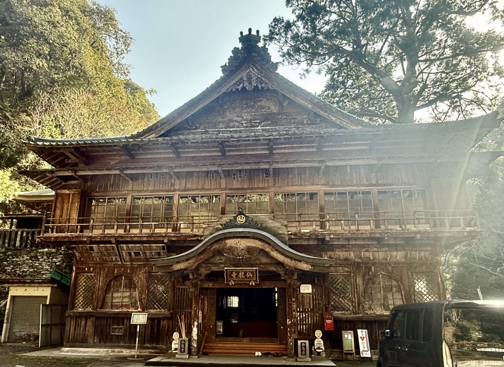 仙龍寺は標高400m弱の所にある山岳寺院であり、深山幽谷に佇んだ静かな場所にあります。歩き遍路の方は、三角寺から一山越える必要があり難所中の難所であると思われます。古書からもその難所ぶりは記されており、僧賢明の「空性法親王四国霊場御巡業記」(1638)にも「善悪無記の三角寺、奥の院こそ世にも又、最も殊勝に覚えける」とのこと。私は車で訪れましたが、離合も難しいようなくねくね道を不安になりながら運転いたしました。(冬場でしたので、晴れた暖かい日で良かった・・)